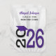 2025 graduation invitation in purple and black school colours on soft silver sunburst design.