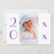 Create the perfect minimal, modern, customisable graduation invitations. Replace the sample photo with your own. The wide white borders on either side contain 20 on the left and XX on the right in large violet script text for the graduation class year which you can customise. The stylish violet watercolor script text that overlays the photograph on the front reads, "Graduate." The white back of the invite features the word "celebrate" in a pale purple watercolor script font. Replace the violet and black sample text on the back for your graduate and event. Personalise it for any graduate: high school, college, graduate school, law school, medical school, trade school.