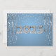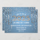 This invitation features 2025 blinged out with a glittery diamond-look. Blue background, silver stars, confetti, and streamers.