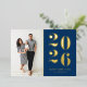 Happy 2025! Send warm new year greetings to your loved ones with this customisable gold foil new year card. It features bold typography and modern typography. Personalise this navy blue new year card by adding your own details.