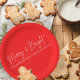 2025 Modern Merry and Bright Red Pink Christmas Paper Plate