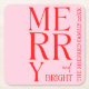 2025 Modern Merry and Bright Red Pink Christmas Square Paper Coaster