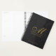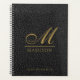 Elegant minimalist monogrammed business office or personal planner featuring a gold swash script initial, and gold name, on a faux black leather background. Suitable for your business or personal yearly planner for 2025 or customise for any year. Great for a college student, as a back to school gift, graduation gift, Christmas or birthday.