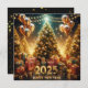 Ring in the New Year with this luxurious greeting card featuring a stunning golden theme. Adorned with beautifully decorated Christmas trees, sparkling ornaments, radiant balloons, and elegantly wrapped gift boxes, this card captures the festive spirit of New Year's Eve. The "2025 Happy New Year" message shines in a bold, golden font, perfect for spreading warmth and joy to loved ones as you welcome the coming year