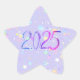 2025 number new year drawing star sticker. Creative artistic happy new year 2025 number handlettering holiday design. Unique 2025 lettering design star shape sticker. Pastel lavender colours dotted artistic design. 2025 bright colourful calligraphy handdrawing design greeting sticker. Holidays bright colourful greeting decor.