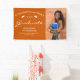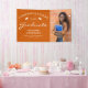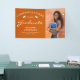 Celebrate your graduate's milestone in style with this graduation party banner. The left side features the words "Congratulations to our Graduate" in white text decorated with a pair of white mortar board caps on a burnt orange background, while a vertical photo of the grad appears on the right. Personalise it with your grad's name, school, and year of graduation.