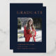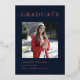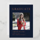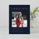 This modern and elegant rose gold foil and navy blue graduation invitation features a photo of the graduate and can be customised to complement their school colours or graduation theme. Flip the card and use the design tools to update with your text.