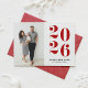 Happy New Year! Send holiday wishes to your family and friends with this customisable photo New Year card. It features bold typography. Personalise by adding your details. This red New Year card is available in other colours and cardstock. Matching items are available.