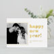 Happy New Year! Send holiday wishes to your loved ones with this customisable modern New Year flat card. It features bold typography. This gold foil New Year photo flat card is available in other colours and cardstock.