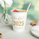 Stylish elegant custom thanksgiving party supply! Celebrate thanksgiving in style with this trendy party paper cups. Design features "thankful for 2025" in gold script typography on a clean white background. Personalise this product by adding name of family or your custom text. Easy to customise. Happy Thanksgiving!
