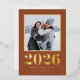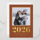 Send your new wishes to family and friends with this customisable Happy New Year card. It features classic typography with a terracotta background. Personalise this gold foil new year card by adding your details. This photo New Year card is available in other colours and cardstock.