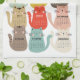 This design features cat illustrations in a variety of bright, vibrant colours.