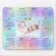 2026 Calendar One Photo Rainbow Glitter Script Mouse Pad. Stay organised in style with this personalised 2026 year-at-a-glance calendar mouse pad featuring a full 12-month calendar layout, one photo in the centre and a name or your custom text in your choice of font style and colour on a holographic rainbow glitter background. This functional desk accessory keeps your schedule within reach while adding a personal touch to your workspace. Customise with your own text, name, business logo, or inspirational quote, and choose your preferred font style and text and calendar grid colours to match your aesthetic. ASSISTANCE: For help with design modification or personalisation, colour change or transferring the design to another product, contact the designer BEFORE ORDERING via the Zazzle Chat MESSAGE tab below or email makeitaboutyoustore@gmail.com.