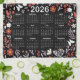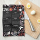 2026 Calendar Whimsical Floral & Butterfly Black Tea Towel