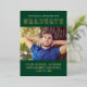 Make their big moment feel extra special with this modern graduation party invitation featuring a favourite photo and real gold foil “graduate” lettering on a rich green layout. Add the graduate name, school, and class year for a polished, varsity-inspired look. The coordinating backside is clean white with a framed photo area and crisp party details for easy reading.