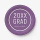 2026 Grad, School Name Modern Purple Graduation Paper Plate