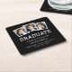 2026 Graduate 3-Photo Black and White Square Paper Coaster