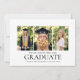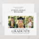 Elegant graduation party invitations featuring three custom photos and traditional typography. This classic design presents a formal, minimalist layout and timeless sense of style. Upload your own photos, and personalize the text with the graduate's name, educational institution, graduation year, the party's date, time, location, and RSVP details. Perfect for high school, college, or university graduation celebrations. Printing colors: black and white, or customize the color to match your university, school, or college. Available as a printed card or a digital download. Explore the online collection for matching design templates!