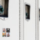 A classy custom senior graduate photo collage graduation magnet with a black square for a high school senior graduating with the class of 2026. Customize with your senior portrait pictures, school name and graduating class under the elegant calligraphy for a great personalized graduation gift. It features a 3 photograph template separated by white lines. Your name is written in gold for a chic touch.