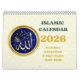 Stunning 2026 Islamic Hijri & Gregorian wall calendar featuring intricate traditional Islamic geometric art in gold and deep teal on a luxurious cream background.