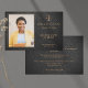 Modern formal elegant black leather look and copper gold law school graduation announcement card template with your custom photo and text. ++++++++++ Easy to personalize on both sides!