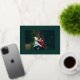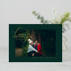 A modern minimal new years card in deep forest green with custom text on front in real rose gold foil and on back in a classy script in ivory. Simply personalize with your text and photos and spread the seasonal cheer around.