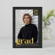 Celebrate a major milestone with this modern, editorial-style graduation announcement designed for a refined, masculine look. Featuring a charcoal gray background, crisp white typography, and real gold foil accents, this double-sided graduation card delivers a timeless yet fashion-forward presentation. The template allows you to personalize the class year, graduate’s name, and school on the front with your main photo, while the back includes space for a custom message and a 3-photo collage. Designed for graduates who want a clean, confident announcement with premium foil detailing and modern typography. © Kimbellished, LLC