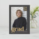 Mark a major milestone with this modern, editorial-style graduation announcement designed with a bold aesthetic. Design features a clean charcoal background with warm gold-toned typography and a refined layout. An easy-to-use template allows you upload your photo and personalize the class year, graduate's name, and school. On the back is a coordinating grad party invitation layout that transitions seamlessly from announcement to celebration. Personalize with the graduate's name and party details. © Kimbellished, LLC