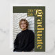 This olive green photo graduation announcement features a clean, modern layout with real gold foil accents. The customizable template allows you to personalize the final two digits of the class year, the graduate’s name, and school, and upload two photos. Adjustable letter spacing lets you fully justify the vertical name and school text for a precise, custom fit. The year and “graduate” are printed in genuine gold foil, while the name and school are digitally printed in ivory for crisp contrast. On the back, upload 3 additional photos and add a custom message. A streamlined graduation announcement designed for seniors who prefer a modern look with metallic detail. © Kimbellished, LLC