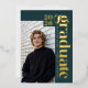 This teal green photo graduation announcement features a clean, modern layout with real gold foil accents. The customizable template allows you to personalize the final two digits of the class year, the graduate’s name, and school, and a main photo for a magazine-style editorial layout. Adjustable letter spacing lets you fully justify the vertical name and school text for a precise, custom fit. The year and “graduate” are printed in genuine gold foil, while the name and school are digitally printed in ivory for crisp contrast. On the back, add an additional 3 photo collage and custom message. A streamlined graduation announcement designed for seniors who prefer a modern look with metallic detail. © Kimbellished, LLC