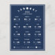 Colour Customisable 2026 Moon Phase Lunar Cycles Dark Blue Colour Minimalist Art Calendar Postcard