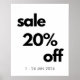 20% Off sale sign in black and white with customisable dates. Designed in a sleek minimalist style. Perfect for retail stores and boutiques.