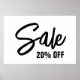 20% Off Sale Sign in large poster format. Black and white colour theme suitable for all retail businesses.