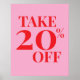 Sale sign in pink and red. The discount rate can be customized using the "Personalize It" function.
