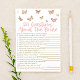 butterflies, pink bridal shower games, 20 questions about the bride, bride to be, get to know the bride, bridal shower game, bridal shower activities