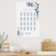 Help your guests find their table with this blue and white rose floral wedding seating chart. It is suitable for a wedding with 20 tables and 200 guests.