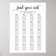Simple Elegant Calligraphy Script Wedding Reception Find your seat. A minimalist design in black and white or any background colour you choose. Just click the customise further link, shown under the text personalisation area on the right, and choose your custom colour background. This sign poster template makes it fast and easy to create stunning additions to your wedding decor. Signs can be enlarged, there are many sizes to choose from, as well as options for custom framing and matting.