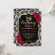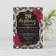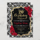 20th Birthday - Black Damask Gold Red Roses Invitation