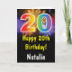 20th Birthday Colourful Rainbow Fireworks Card with personalised name. For further customisation, please click the "Customise it" button and use our design tool to modify this template.