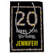 This fun, botany-inspired birthday-themed giftbag design features the message “Happy 20th Birthday,” along with an editable recipient name. The large number “20” and the border both feature flower icons. A birthday themed giftbag like this might be used when giving a gift or present in celebration of somebody’s twentieth birthday. [~Z0000653]