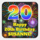 20th Birthday: Fun Fireworks Look, Rainbow # 20 Square Sticker