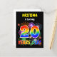 The front of this fun and exciting birthday party invitation postcard design features an editable name, a lively bursting celebratory fireworks inspired pattern, and the message "20 YEARS OLD!" having a colourful rainbow spectrum inspired gradient pattern. The back features a personalised message with information about the party, such as when and where it is being held. Invitation postcards like this could be sent to potential attendees of a party being held to celebrate the birthday of somebody who is turning 20 years old. [~Z0000452]