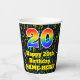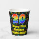 This joyful and colourful music-themed birthday paper cup design features a large number “20” with a rainbow spectrum gradient inspired pattern, along with the message “Happy 20th Birthday,”, and a personalised name. The background features a multicolored pattern having music notes and symbols of various sizes and colours. Vibrant, colourful paper cups like this might be fun to have at a birthday celebration/party being held in celebration of somebody’s 20th birthday. [~Z0000541]