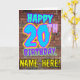 The front of this fun birthday greeting card design features the message “HAPPY 20TH BIRTHDAY,” having a vibrant, colourful, graffiti-inspired appearance, in addition to an editable recipient name. The background of the front features a brick wall inspired pattern. The inside has a custom birthday greeting message, or could perhaps be cleared and left blank if a message is to be written by hand instead. A fun, customised birthday greeting card like this might be a fun way to deliver birthday greetings to somebody who is celebrating their twentieth birthday. [~Z0000531]