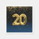 Gold mylar party balloons on gradient black and blue with gold star confetti for 20th anniversary or birthday party.