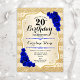 20th Birthday - Gold Stripes Royal Blue Roses Invitation