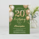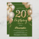 20th Birthday Green and Gold Balloons Confetti Invitation