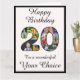 The front of this classical themed 20th birthday large greeting card design features the number "20" filled in with 9 of your photos. The message "Happy Birthday," sits at the top with the two lower sets of text available for you to personalised. Make this a unique custom card for your best friend, daughter, partner, goalkeeper etc, the choice is yours. The inside features a personalised birthday greeting messages on both pages, or could perhaps be cleared and left blank if a message is to be written by hand instead. A customisable photo birthday card like this is a fun way to send a message in celebration of somebody’s twentieth birthday. The photo's used as examples are all square images with the main figure approximately central. The design is available in a full range of sizes right up to the giant size card. Pop in to our store for more great birthday cards and gift ideas.