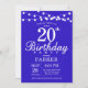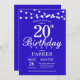 20th Birthday Invitation with String Lights. Royal Blue Background. 13th 15th 16th 18th 20th 21st 30th 40th 50th 60th 70th 80th 90th 100th, Any age. For further customisation, please click the "Customise it" button and use our design tool to modify this template.