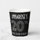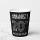 This stylish Roaring Twenties era inspired art deco style birthday-themed paper cup design features a personalised name, plus the message “20TH BIRTHDAY PARTY!”. The number “20TH” has a fancy geometric lined appearance. Paper cups like these might be used at a birthday party held in celebration of somebody’s twentieth birthday, or some other 20th event. [~Z0000658]